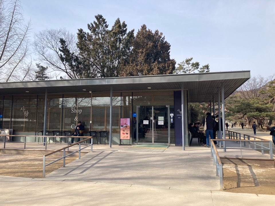 국가유산방문자여권 스탬프는 근정전 왼쪽의 수정전 앞에 위치한 사랑 카페 내부에 있습니다.