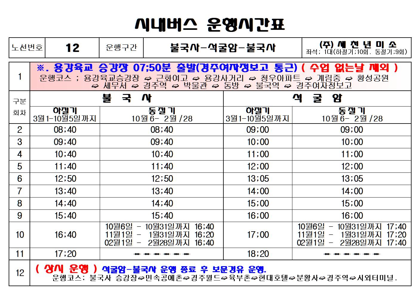 아래에 버스시간표를 공유해 봅니다.