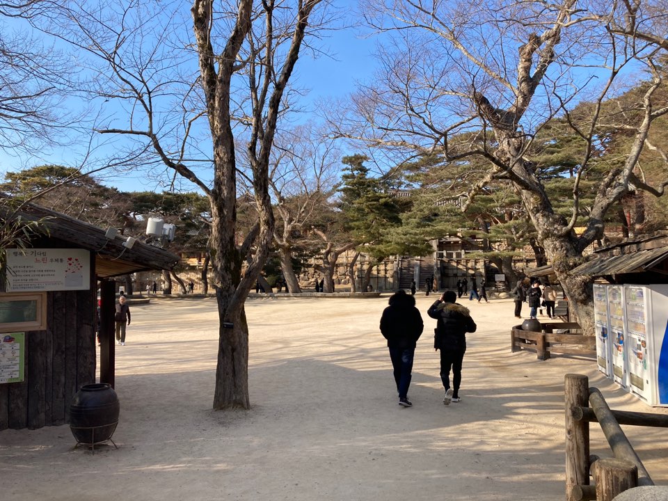 일반적으로 네비에 불국사 주차장을 선택하면 나오게 되는 불국사 공영주차장을 이용할 경우 정문 입장까지 10분 정도를 이동해야 합니다.